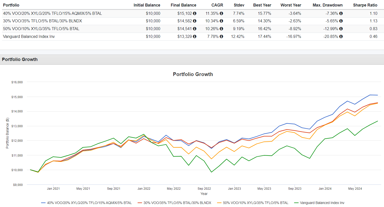 Trying to use XYLG in a portfolio, I built the following to compare.